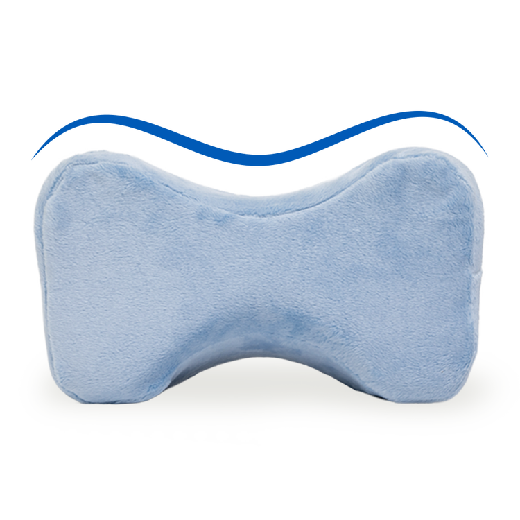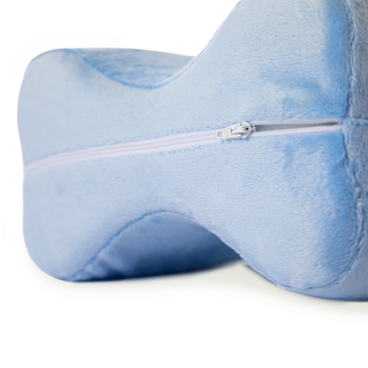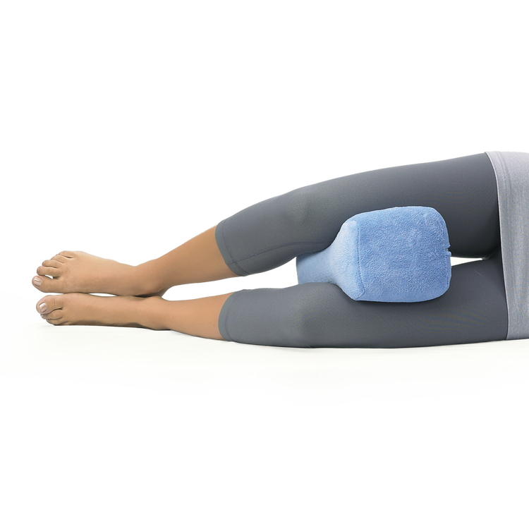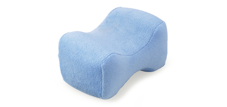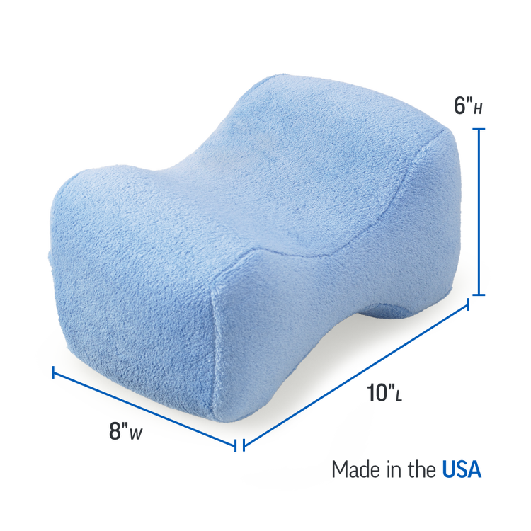 Measuring 10"L x 8"W x 6"H, the pillow fits comfortably between the knees.