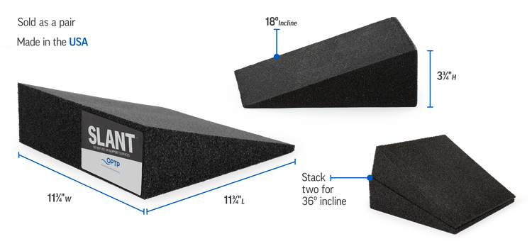 Ideal for stretching, strengthening and rehabilitation at home or in the clinic, OPTP® Slant foam incline boards are easier-to-use and more affordable than wooden, metal or plastic boards. Slant boards are integral in the prevention and treatment of common lower-leg & foot problems such as Achilles tendinitis, heel spurs, shin splints, calf strains, plantar fasciitis, overuse syndromes and post-surgery contraction. They’re perfectly suited for stretching and weight-bearing exercise at home, in the clinic, or at the gym.