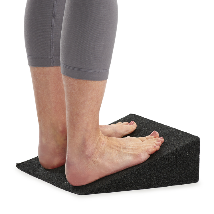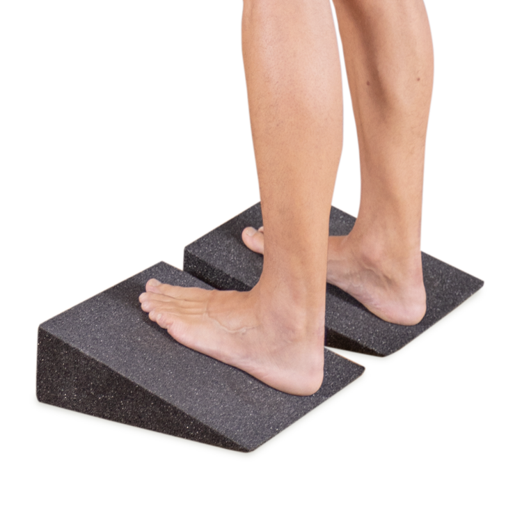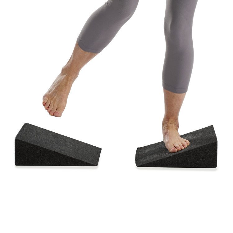 With an 18° incline and sized to accommodate most feet, this pair of foam slant boards is an inexpensive, lightweight tool for stretching or strengthening the lower extremities. They can be stacked to create a 36° incline.