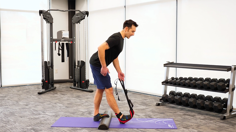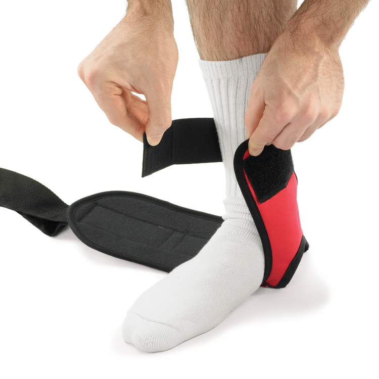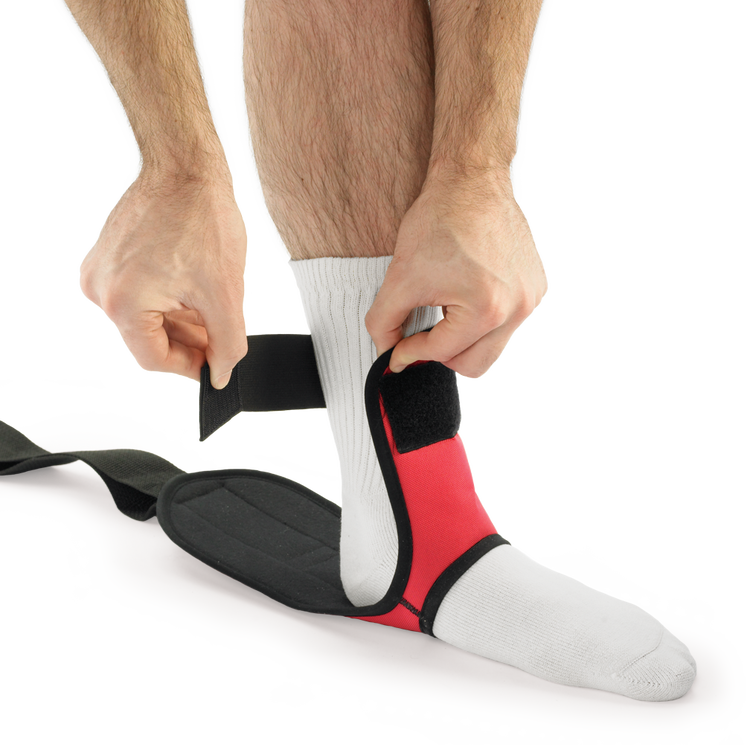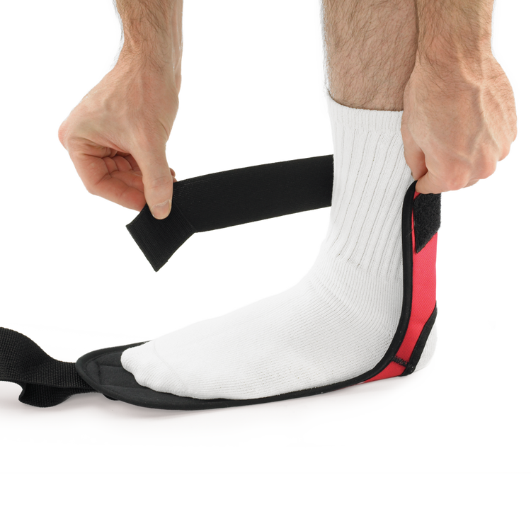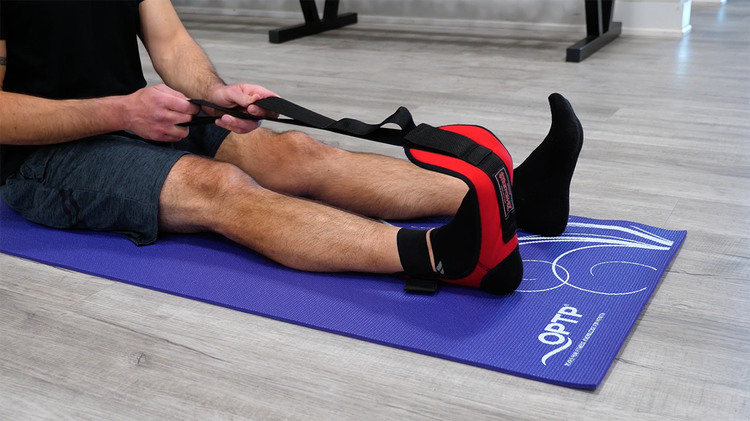 This option is for stretches where plantar fascia and calf stretching is not desired, with the heel at the fabric opening, and strap around the ankle.