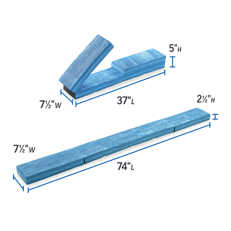 Measuring 74"L x 7.5"W x 2.5"H when unfolded, the beam is great for balance training and rehabilitation exercises.
