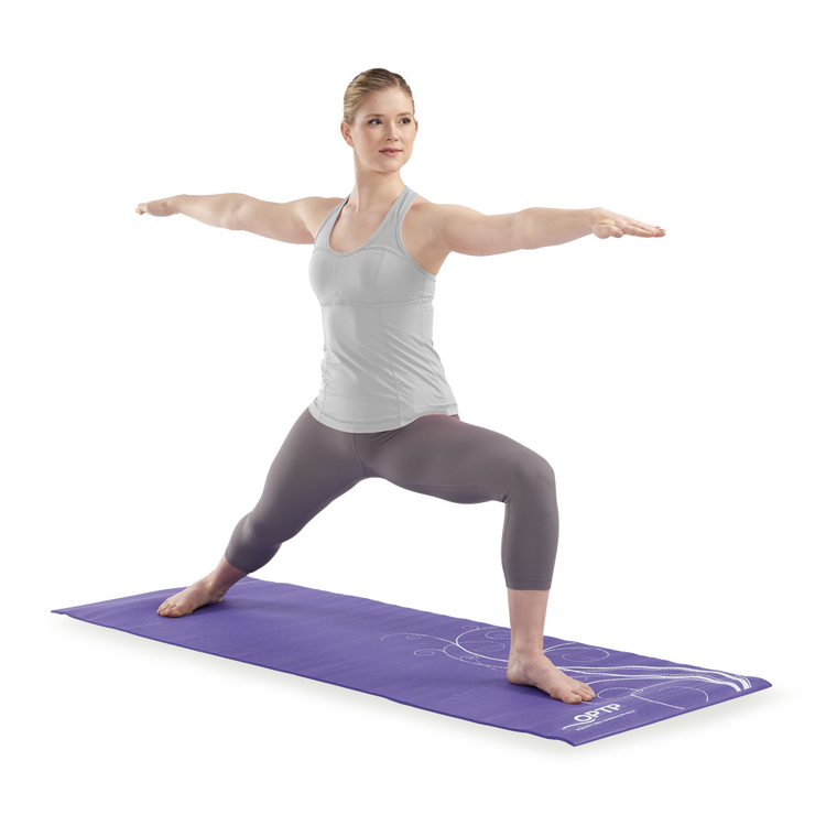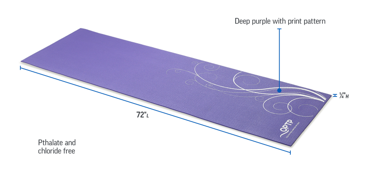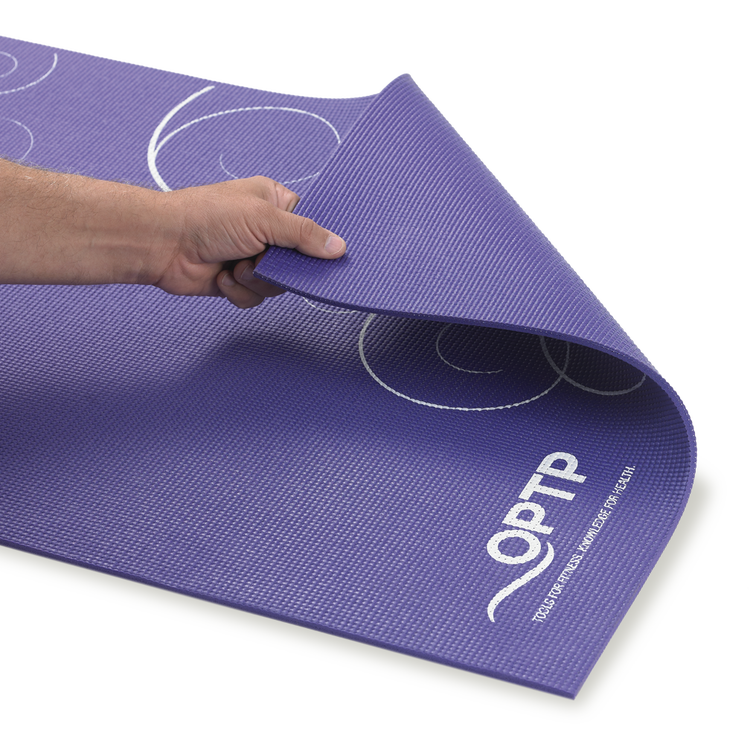 The OPTP® Yoga Mat provides essential cushioning for bones and joints while ensuring a strong connection with the floor while performing various poses. The non-slip, lightly tacky surface helps improve stability during poses. Featuring a deep purple color with a simple print pattern, this attractive yoga mat provides essential cushioning during yoga, Pilates, general exercise and more.