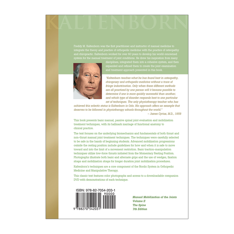The 7th edition of this classic Kaltenborn text focuses on basic evaluation and mobilization of the spine with an emphasis on biomechanical principles. Beginning to advanced level physical therapy students and manual therapy practitioners will find this book, and accompanying video guide, to be a valuable resource.