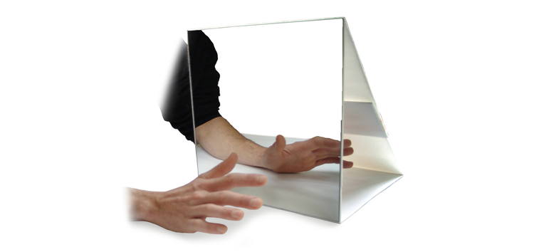 For clinical use or as an in-home tool, this mirror box is designed to treat pain and disability in the hands or feet. Place the impaired hand behind the mirror and the healthy hand in front of the mirror, to trick the brain into believing the reflection of the healthy hand is the impaired hand. Then exercise the impaired hand, in the brain, by performing movements with the healthy hand. An integral part of Graded Motor Imagery, this tool is advisable for use under clinical guidance.