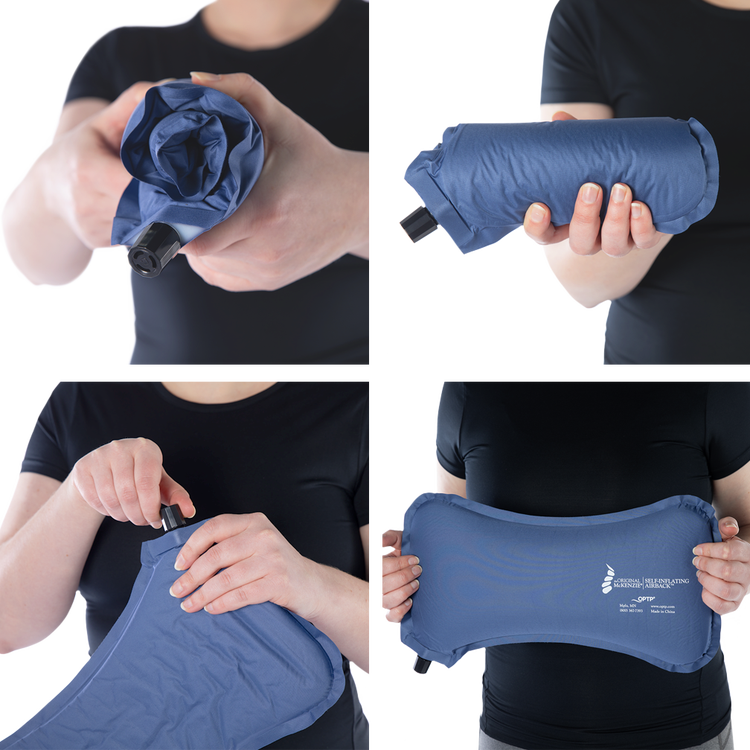 Twist the valve to inflate to the desired level in a matter of seconds. To deflate, re-open the valve, roll the AirBack™ tightly and close the valve.