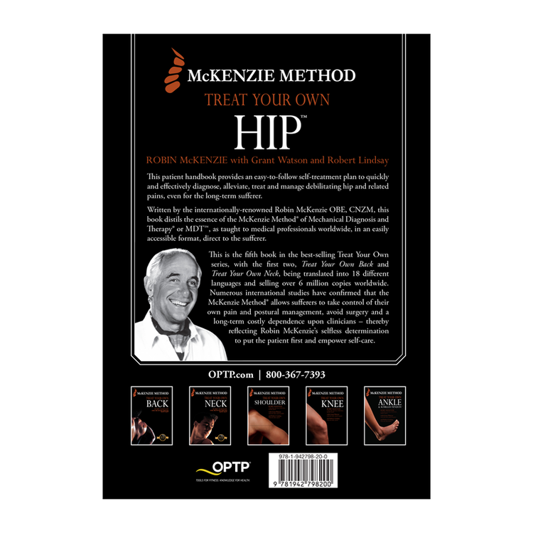 Written by physiotherapist Robin McKenzie, Treat Your Own Hip™ provides a rational explanation for the causes of hip pain. You’ll gain an understanding of how the hip works and what causes hip pain. You’ll then be introduced to the McKenzie Method®, which is a series of progressive exercises that you can do to self-treat pain and help prevent recurrence. This exercise program includes details on when to perform exercises, how to determine if you’re ready to move on to the next exercise, how to perform the exercises correctly, what to do when the pain has subsided, and how to prevent recurrence of pain. You’ll also receive information about lifestyle habits for optimal hip care.