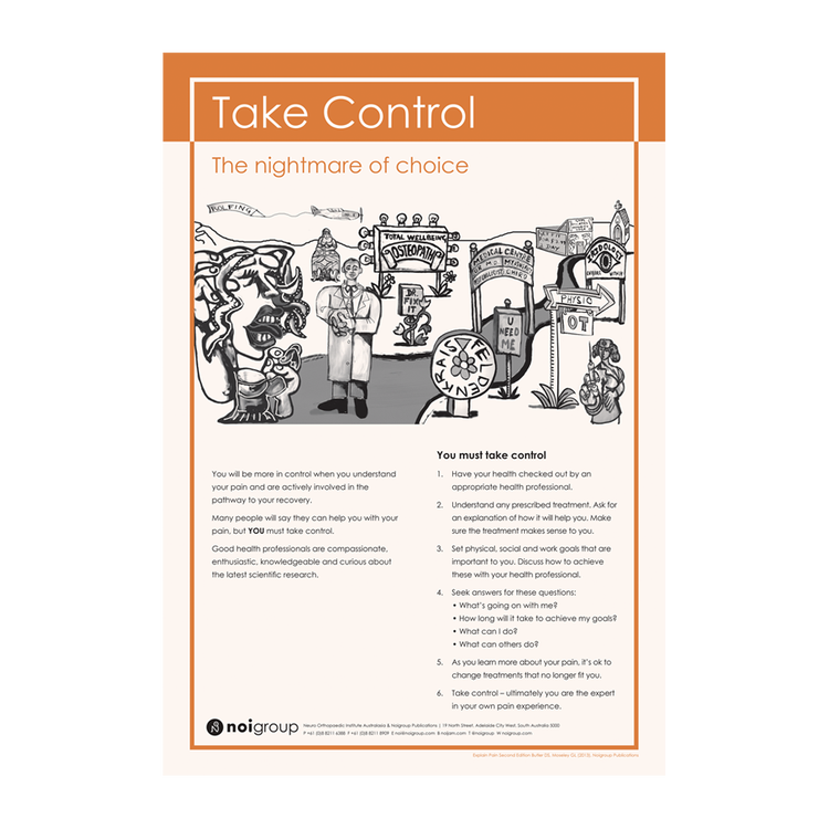 Reinforcing Butler and Moseley's best-selling Explain Pain book, these posters are perfect for clinics, pain groups or as constant support at home. Each poster covers an important lesson about pain.