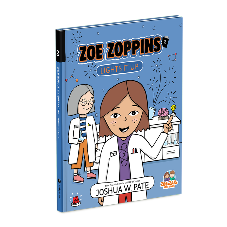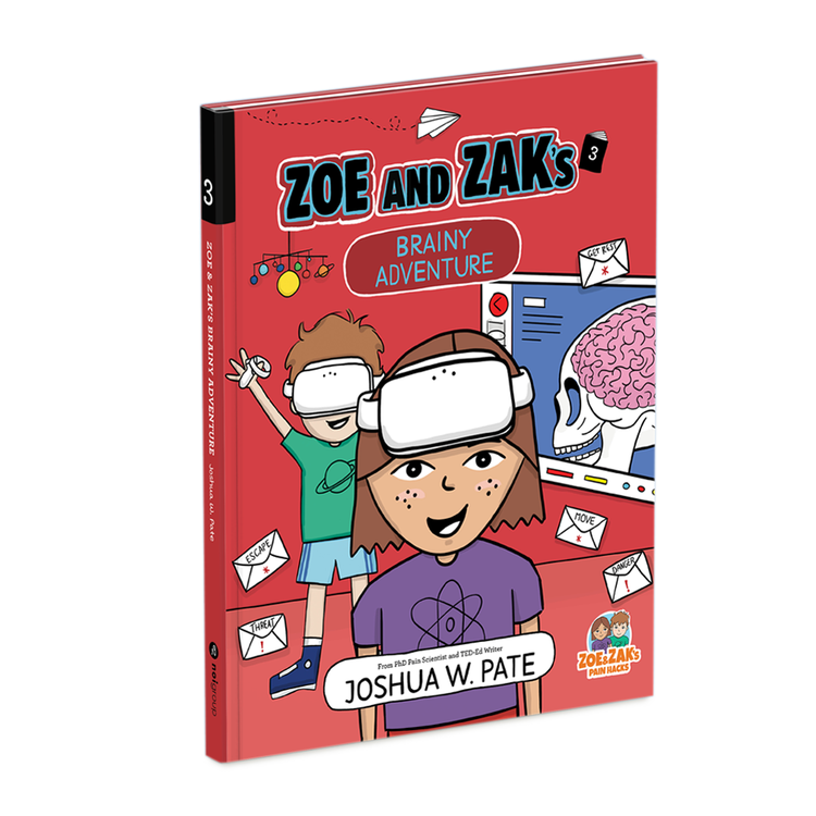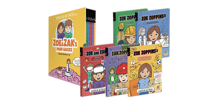 This series covers multiple pain topics and features easy-to-follow visual aids and language. Sold as a series of five hardcover books within a slipcase, each book is between 28-40 pages. Zoe & Zak’s Pain Hacks includes the following storylines: