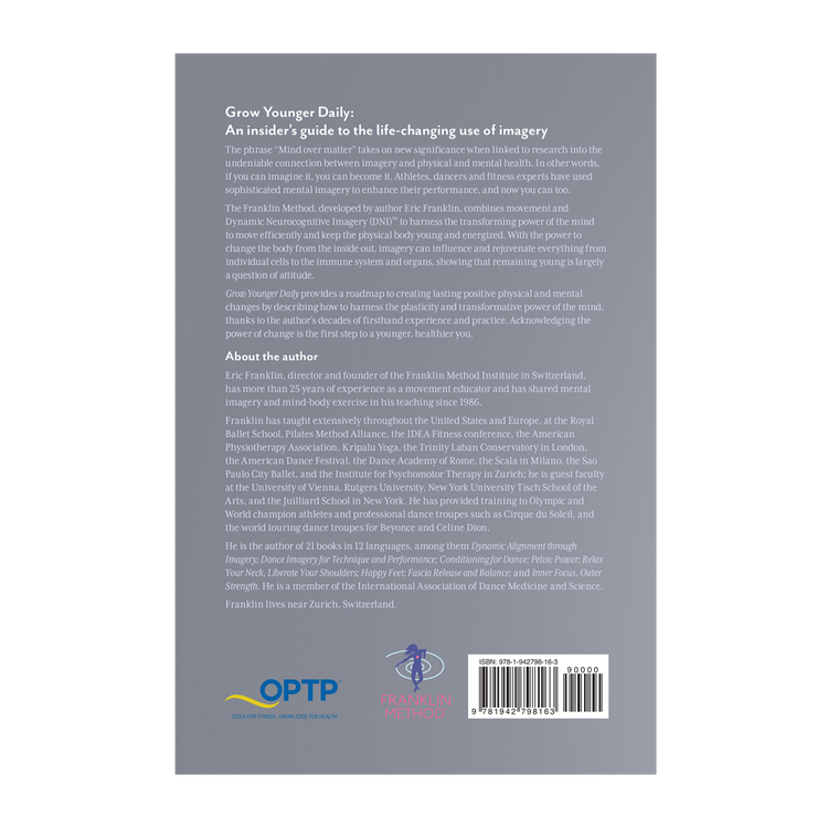 The phrase “Mind over matter” takes on new significance when linked to research into the undeniable connection between imagery and physical and mental health. In other words, if you can imagine it, you can become it. Athletes, dancers and fitness experts have used sophisticated mental imagery to enhance their performance, and now you can too. The Franklin Method, developed by author Eric Franklin, combines movement and Dynamic Neurocognitive Imagery (DNI)™ to harness the transforming power of the mind to move efficiently and keep the physical body young and energized. With the power to change the body from the inside out, imagery can influence and rejuvenate everything from individual cells to the immune system and organs, showing that remaining young is largely a question of attitude.