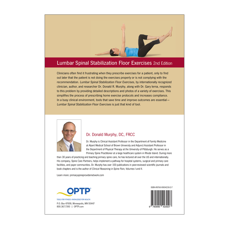 Clinicians often find it frustrating when they prescribe exercises for a patient, only to find out later that the patient is not doing the exercises properly or is not complying with the recommendation. Lumbar Spinal Stabilization Floor Exercises, by internationally recognized clinician, author, and researcher Dr. Donald R. Murphy, along with Dr. Gary Ierna, responds to this problem by providing detailed descriptions and photos of a variety of exercises. This simplifies the process of prescribing home exercise protocols and increases compliance. In a busy clinical environment, tools that save time and improve outcomes are essential – Lumbar Spinal Stabilization Floor Exercises is just that kind of tool.