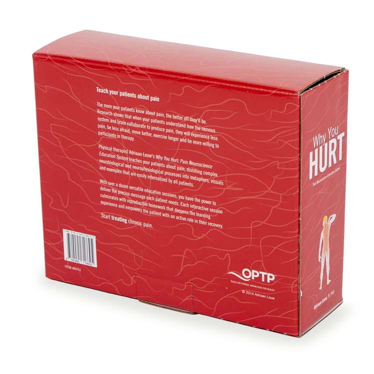 From physical therapist and pain science expert Adriaan Louw, PT, PhD, the Why You Hurt: Pain Neuroscience Education System is an interactive tool that will help clinicians engage in meaningful discussions with patients. The system refines complex medical neuroscience into easily internalized metaphors, examples, and images to efficiently teach patients what pain really is and how it works.