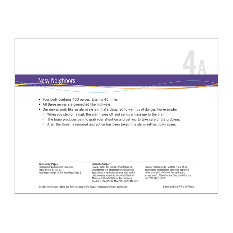 The more your patients know about pain, the better off they'll be. Research shows that when your patients understand how the nervous system and brain collaborate to produce pain, they will experience less pain, be less afraid, move better, exercise longer and be more willing to participate in therapy.