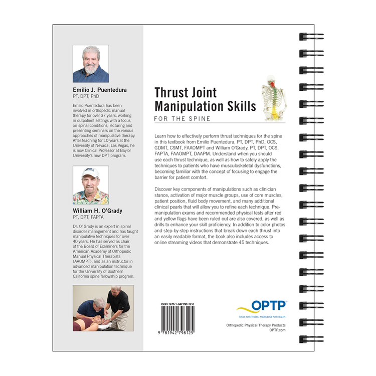 Thrust Joint Manipulation Skills for the Spine contains information on how to effectively perform thrust techniques, allowing therapists and students engaged in the practice to understand and safely apply the concepts within the framework of movement-based therapy.