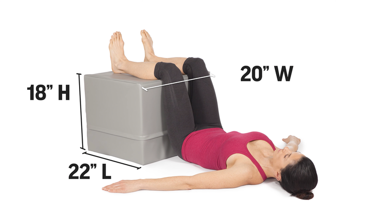 This versatile positioning bolster elevates the lower extremities with the knees and hips bent to 90°. Depending on which side is down, the CUBE has a height of 18”, 20” or 22”. The CUBE encourages the release of muscle tension in the hips, lower back, neck and shoulders; it eliminates imbalances from work, sports and improper sitting or sleeping positions; and it encourages optimal alignment prior to exercise or activity. A 3” Topper is available (sold separately) for added height and comfort.
