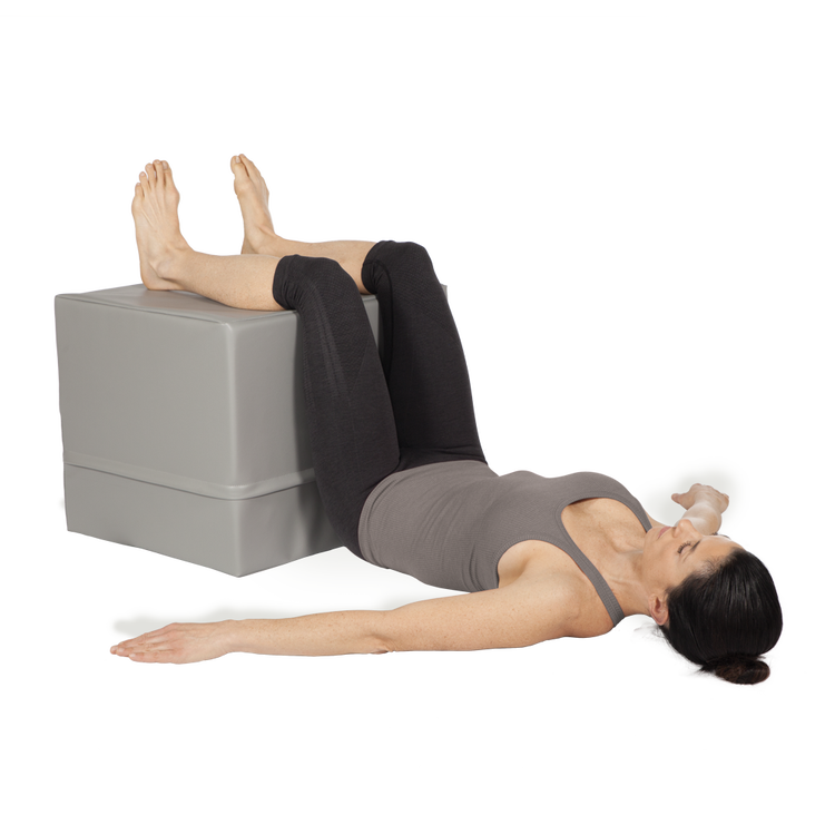 Rest the feet and lower body atop the CUBE to encourage the release of muscle tension in the hips, lower back, neck and shoulders.