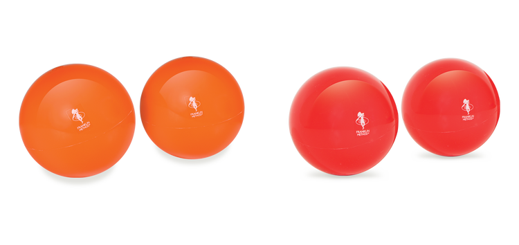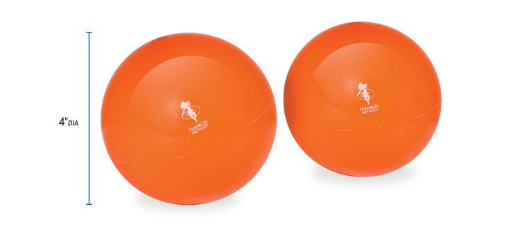 The Franklin Method® Smooth Ball™ Sets are designed to comfortably massage even the most sensitive user. The smooth surface provides deep muscle penetration without aggravating soft tissue. The Mini Smooth Ball Set™ (red) measures 3” diameter and the regular Smooth Ball Set™ (orange) measures 4” diameter. These Franklin Method balls come partially inflated. Adjust the level of firmness using the Needle Inflating Pump (sold separately) from OPTP®.