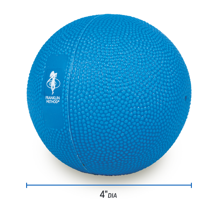 This self-massage ball is filled with water to provide extra weight for strength and toning during movement exercise. Measuring 4"DIA, the Toning & Movement Ball™ fits into the palm of the hand and has a pebbled, non-slip texture that is easy to grip. Use for Franklin Method® exercises to help strengthen and tone the body and to help improve posture while decreasing back pain and shoulder and neck tension.