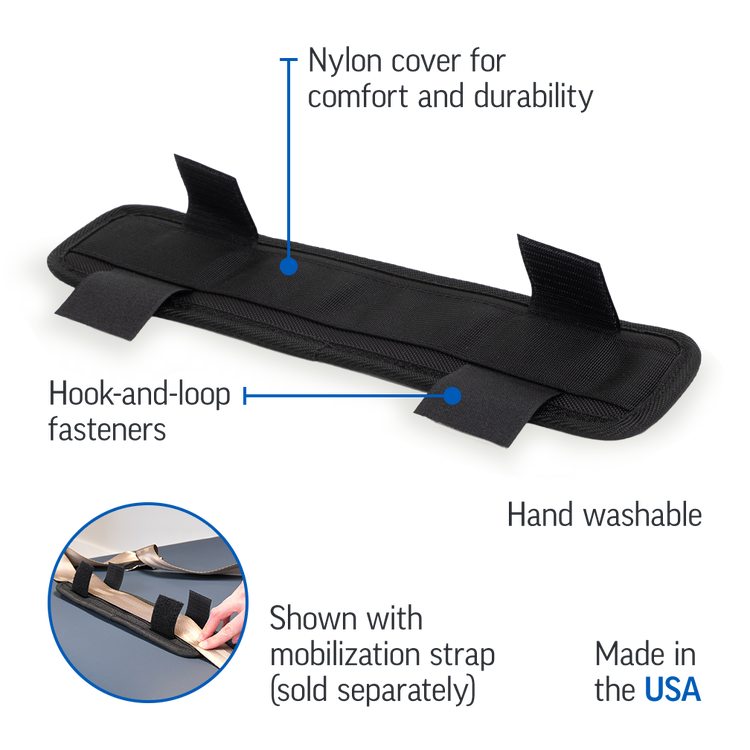 This durable nylon-covered foam pad provides extreme comfort and durability when performing manual therapy mobilizations using a mobilization strap. Constructed of high-quality materials, it features hook-and-loop fasteners for easy attachment to a mobilization belt. The pad fits straps up to 2"W. This is a pad only; mobilization straps can be purchased separately.