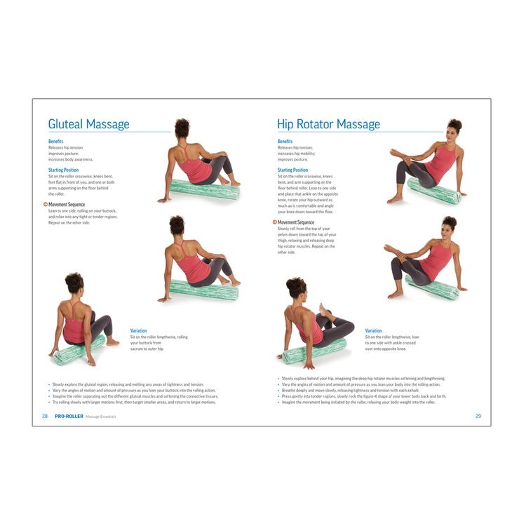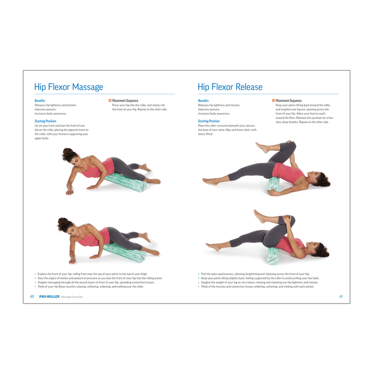 Some of the exercises in PRO-ROLLER® Massage Essentials include: