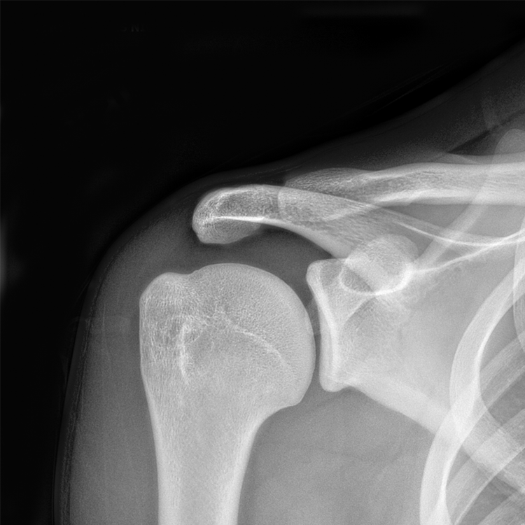 Humeral head is seated lower in the glenoid socket.