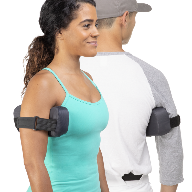 The PRO Shoulder Support counteracts gravity to help reduce strain on the shoulder joint and improve blood flow to the rotator cuff.