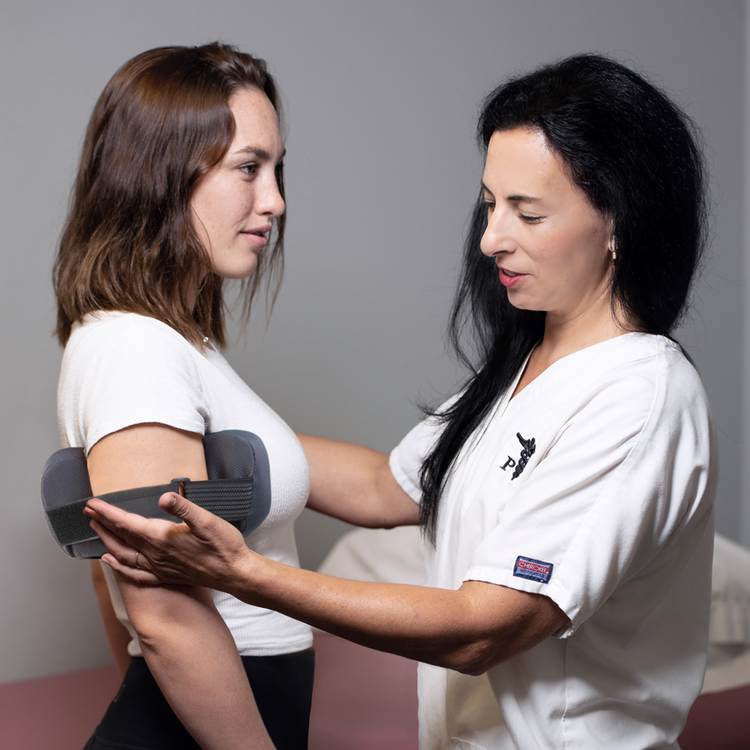 Dianne Cortese, PT, DPT, noticed after post-surgical patients could remove their slings, they experienced pain due to how gravity pulls on the arm, straining the shoulder joint. She noticed a similar effect in baseball players, post-performance, when the rotator cuff was too fatigued to do its job: stabilizing the shoulder joint. Her answer was the PRO Shoulder Support - carefully designed to cradle the shoulder joint of athletes, post-surgical patients, and anyone with a sore or fatigued shoulder.