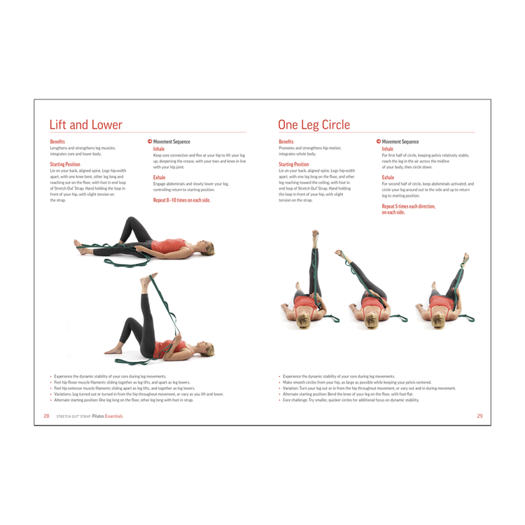 The book Stretch Out Strap Pilates Essentials features more than 40 exercises with color photographs and step-by-step instructions.