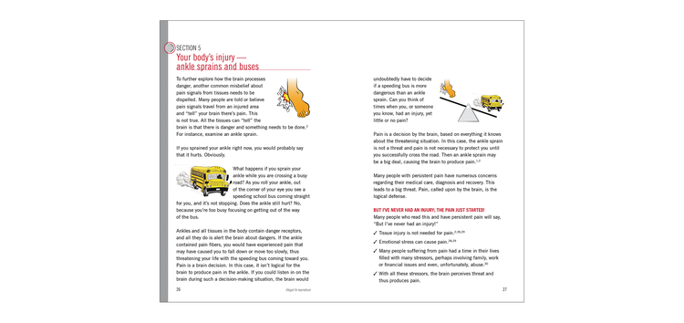 This book was written to educate you on how the nervous system and the brain process information and contribute to your pain experience. The latest research shows that the more you know about pain and how it works, the better off you'll be. This includes moving and functioning better, experiencing less pain and having increased ability and interest in doing more healthy exercise and movement. This is essential in recovery.