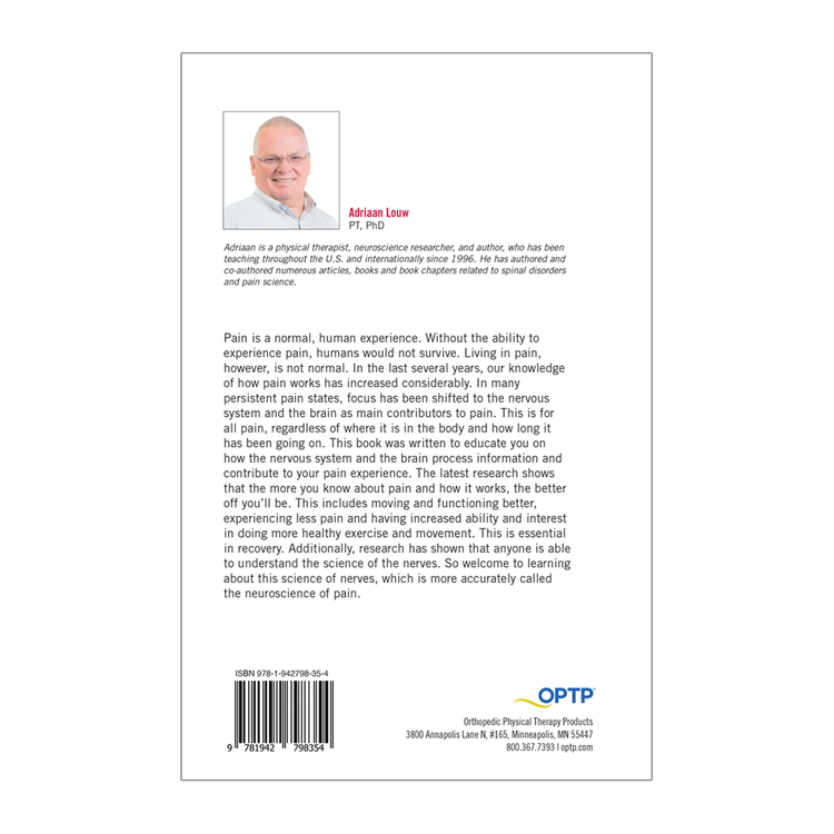 The latest research shows that the more you know about pain and how it works, the better off you’ll be. Written by Adriaan Louw, a pain neuroscience expert and author of a comprehensive series of neuroscience books, this guide teaches the neuroscience of pain in easy-to-understand language and provides simple strategies to move and function better, experience less pain, and increase your ability and interest in participating in healthy exercises and movement.